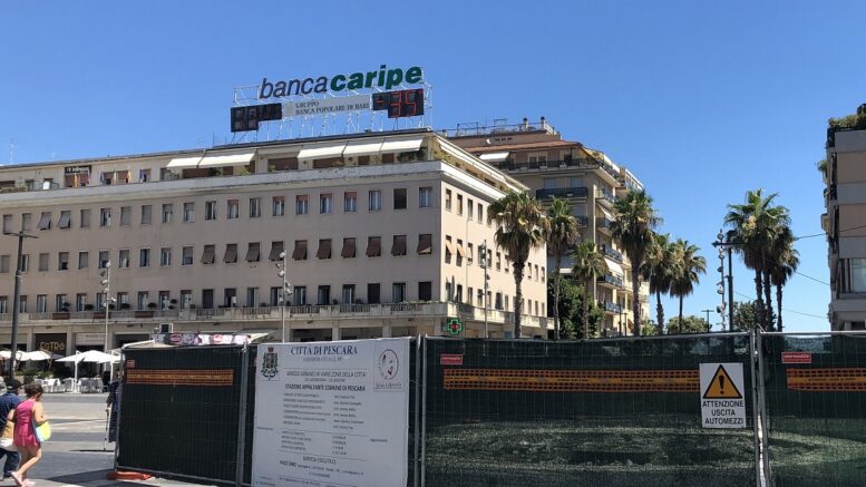 É fermo il cantiere della “Fontana musicale”, l’opera da 310 mila euro che il Comune di Pescara sta realizzando in piazza Salotto ed i cui lavori sono iniziati a giugno per poi fermarsi. Questa mattina la commissione Controllo e garanzia del Consiglio Comunale, convocata dal presidente Piero Giampietro, esponente del PD, si è recata in sopralluogo, constatando l’inoperatività del cantiere.