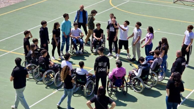 Al termine della passeggiata in carrozzina, dopo aver scoperto che le barriere possono essere anche create dai loro comportamenti errati nel parcheggiare auto o bici nel cortile della scuola, i ragazzi hanno giocato a pallavolo tutti insieme, seduti in carrozzina e non, per dimostrare come lo sport sia davvero inclusivo solo promuovendo la coesione sociale e la parità di partecipazione.