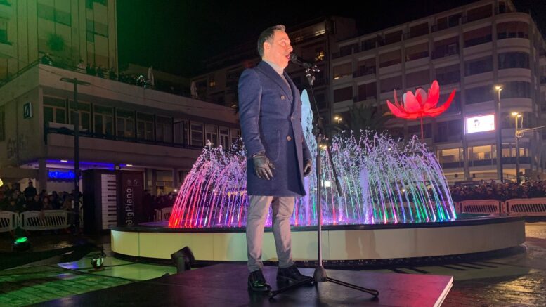 Piazza gremita per l’inaugurazione del Big Piano, la fontana interattiva di piazza Salotto. Alla cerimonia anche l’esibizione del tenore Piero Mazzocchetti