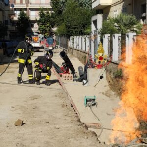La perdita, provocata dalla rottura accidentale di una tubazione di adduzione durante le operazioni di scavo per la posa si una condotta idrica, si è successivamente incendiata a seguito del contemporaneo tranciamento di un cavo elettrico presente in corrispondenza dello scavo. Il personale intervenuto ha provveduto alla momentanea messa in sicurezza dell’area, per consentire l’intervento del personale Enel per la disattivazione della alimentazione elettrica e procedere successivamente alla eliminazione della perdita di gas e alla contestuale estinzione delle fiamme.