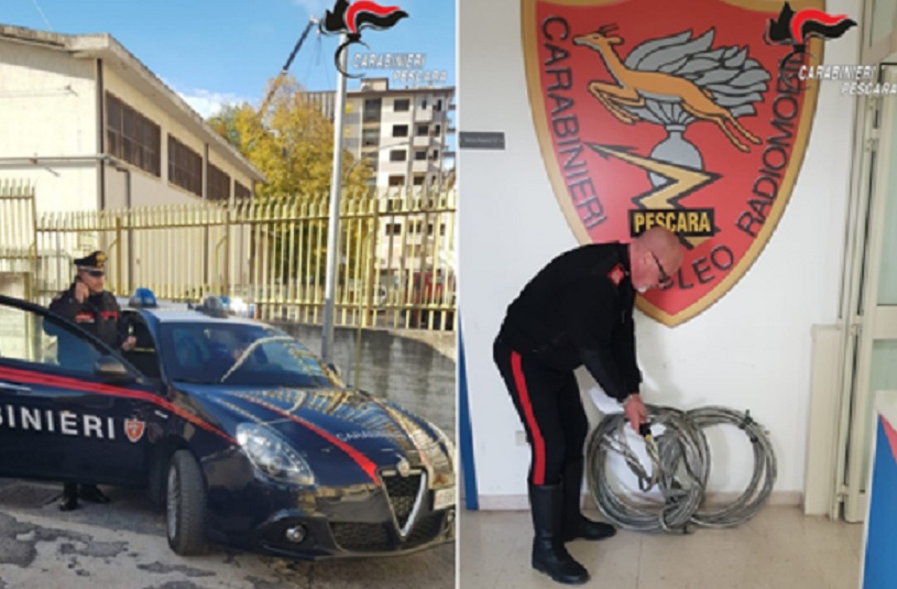 Successivamente è stato fermato nel quartiere di Rancitelli a Pescara un 34enne italiano, con precedenti di polizia specifici e per spaccio di sostanze stupefacenti, il quale alla vista dei militari cambiava direzione repentinamente mentre si trovava a bordo della sua vettura. Dopo un brevissimo inseguimento i carabinieri sono riusciti a fermarlo e a seguito di perquisizione personale è stato trovato in possesso di 2 matasse di cavi di rame per alta tensione con una sezione di 2,5 cm del peso complessivo di 40 kili. Addosso aveva un coltellino a scatto con lama lunga 15 cm. Il materiale è stato posto sotto sequestro ed i due uomini sono stati denunciati per ricettazione e porto di oggetti atti ad offendere.