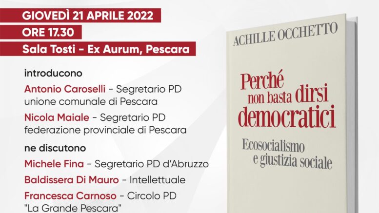 Alla presentazione prenderanno parte, oltre all’autore, il Segretario PD dell’Unione comunale di Pescara, Antonio Caroselli, il Segretario PD della Federazione provinciale di Pescara, Nicola Maiale, Il Segretario del PD d’Abruzzo, Michele Fina, la componente del Direttivo del Circolo tematico “La Grande Pescara”, Francesca Carnoso e Baldissera Di Mauro, intellettuale ed ex Dirigente Regione Umbria.