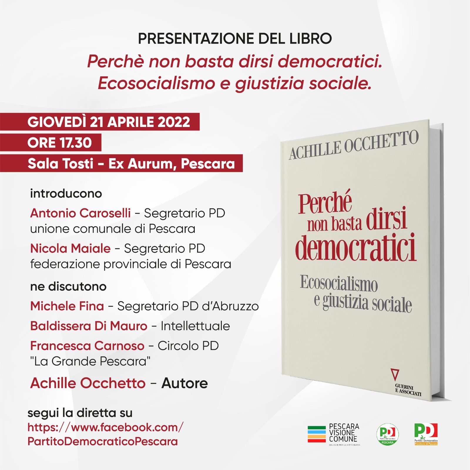 Alla presentazione prenderanno parte, oltre all’autore, il Segretario PD dell’Unione comunale di Pescara, Antonio Caroselli, il Segretario PD della Federazione provinciale di Pescara, Nicola Maiale, Il Segretario del PD d’Abruzzo, Michele Fina, la componente del Direttivo del Circolo tematico “La Grande Pescara”, Francesca Carnoso e Baldissera Di Mauro, intellettuale ed ex Dirigente Regione Umbria.