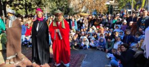 Quest’anno l’accoglienza ai Magi, curata come sempre dalla parrocchia di Sant’Antonio, si è svolta al Parco Florida, trasformato per la prima volta in un grande presepe vivente. Nella scenografia erano presenti i pastori con i loro animali – pecore, asini, vitellini – la casa di Maria e Giuseppe con gli attrezzi da falegname, l’osteria con le botti di vino, la capanna con la mangiatoia in cui era deposto il Bambino e perfino il palazzo di Erode.