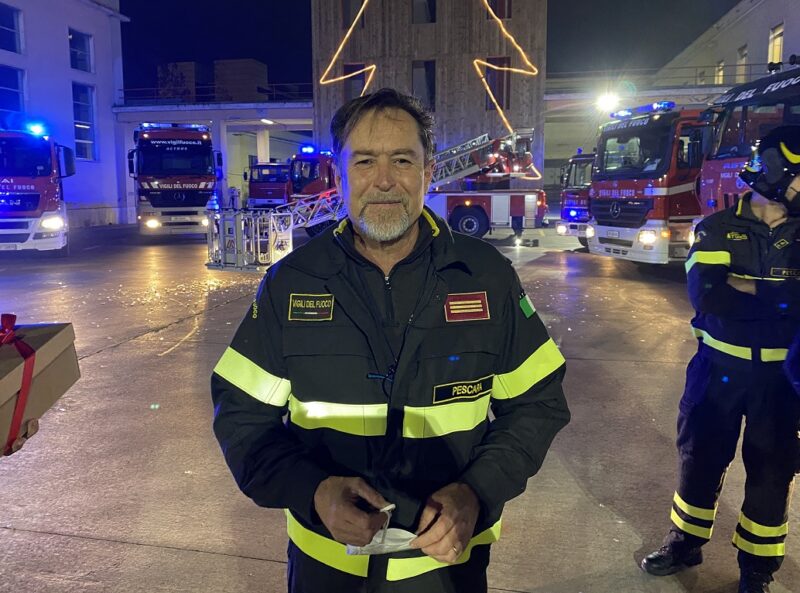 Lo storico Capo sezione del Turno “A” dei Vigili del Fuoco di Pescara, va in pensione dopo trentacinque anni di lodevole servizio iniziato come Vigile del Fuoco permanente nel 1986 nel Comando di Brescia, dopo aver svolto il servizio militare come Vigile Ausiliario nel Comando di Chieti. Durante la sua carriera lavorativa si è distinto per aver conseguito diverse specializzazioni, alcune delle quali: patenti terrestri per la guida di mezzi pesanti, patenti per la conduzione di mezzi nautici ed unità operativa del Nucleo Speleo-alpino fluviale del Corpo Nazionale dei Vigili del Fuoco; ha inoltre partecipato a numerose missioni, tra cui: l’esondazione del fiume Pescara; i terremoti avvenuti in Umbria e Marche, San Giuliano di Puglia e L’Aquila.
