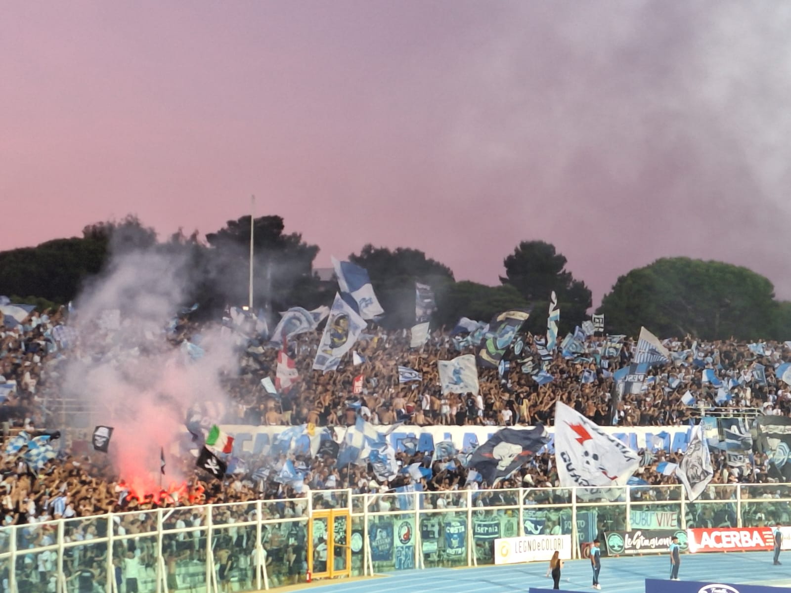 Al termine del match decisivo contro la Ternana ieri sera sono partiti i caroselli e i fuochi d’artificio lungo le strade intorno allo stadio e nel centro cittadino.