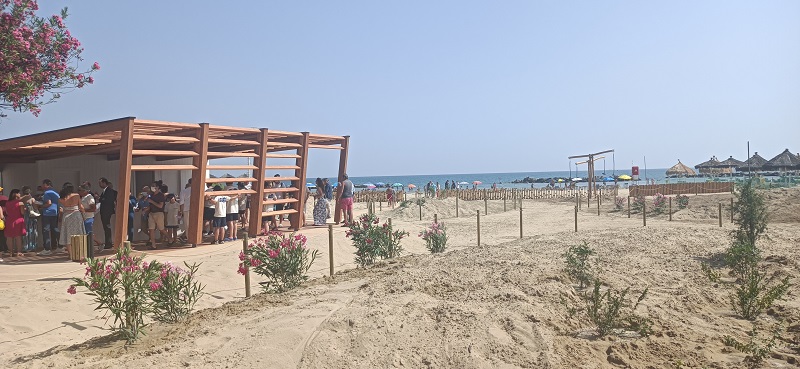 Taglio del nastro a Pescara della prima spiaggia libera inclusiva e sostenibile, nata grazie alla collaborazione con la Fater che ha sostenuto il Comune per la riqualificazione del tratto del litorale nei pressi di via Muzii e con l’appoggio di Legambiente.