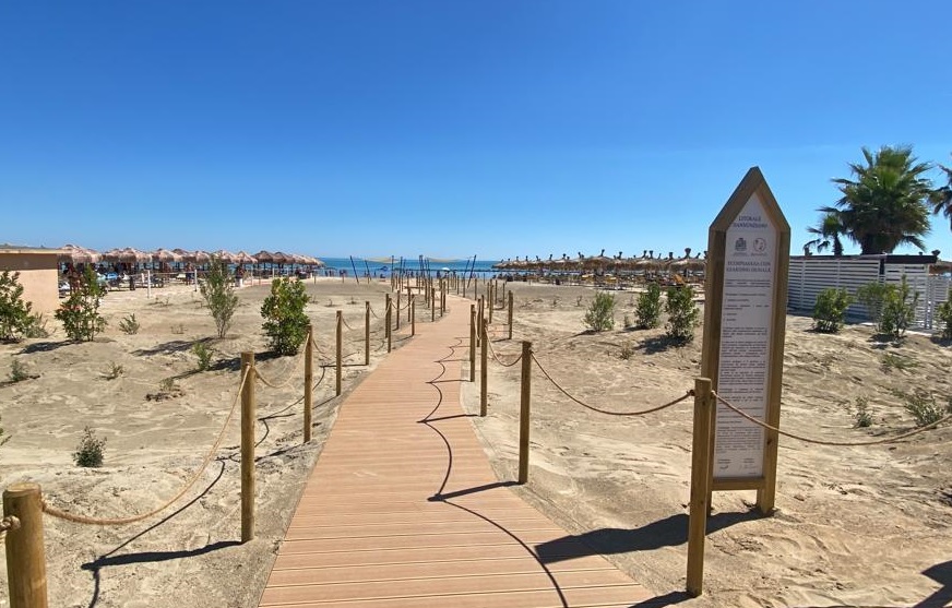 La spiaggia avrà dei cordoni dunali con gli elementi vegetali da inserire e degli elementi non vegetali, quali la passerella centrale con pedane e slarghi, le vele ombreggianti, la recinzione palo/corda, molto presto anche le panchine, il totem informativo e mappe informative che costituiscono l’insieme del progetto.