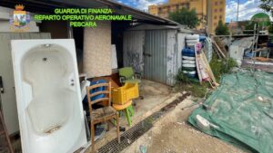 Elicottero dalla Guardia di Finanza individua una “baraccopoli” occultata nel centro di Pescara. Tre indagati e migliaia di euro di tributi non versati.