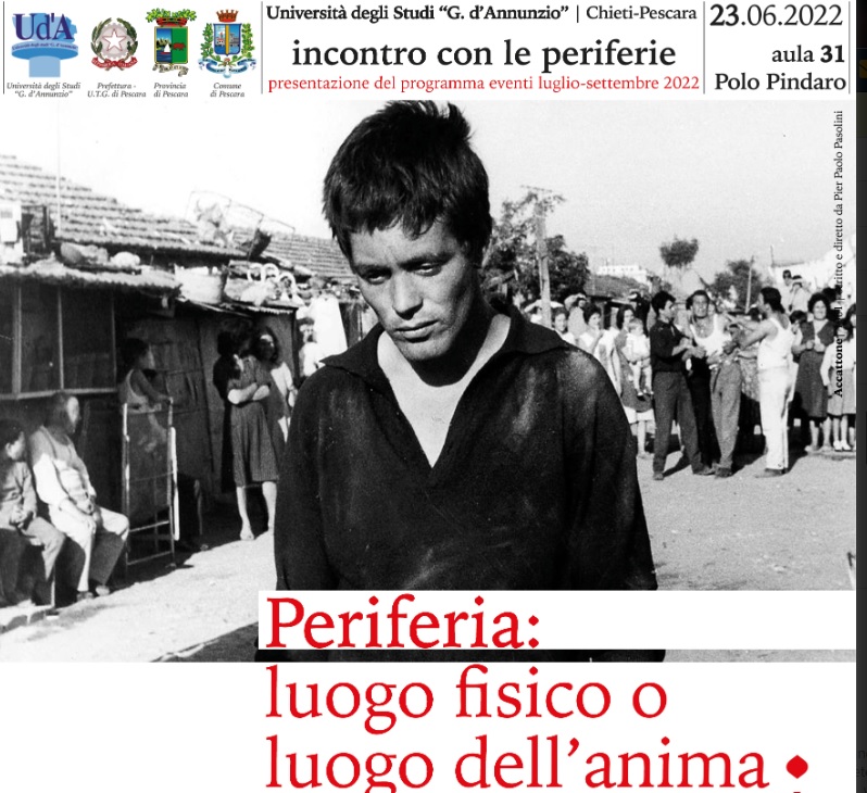 Tra le iniziative del Tavolo sulle periferie c’è il convegno dal titolo “Periferia: luogo fisico o luogo dell’anima?” in programma domani, 23 giugno, al Polo Pindaro aula 31 dell’università “Gabriele d’Annunzio”. Non solo, annunciate anche iniziative di socializzazione, sportive, oltre che proiezioni cinematografiche e concerti di musica moderna che coinvolgeranno diverse aree del capoluogo adriatico: Rancitelli, Fontanelle, San Donato e della provincia di Pescara, in particolare il comune di Corvara.