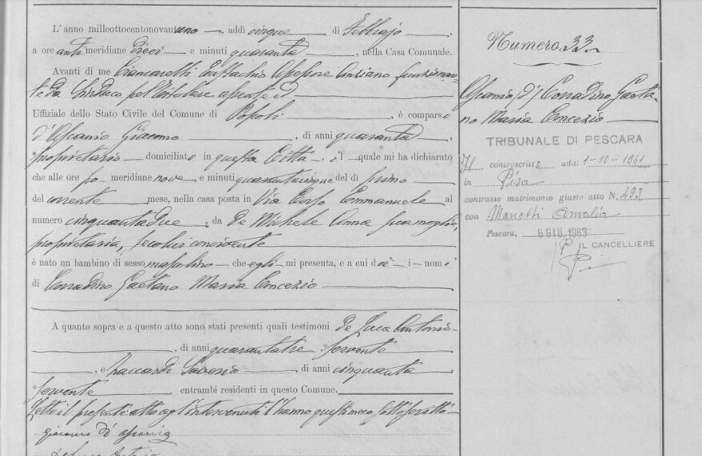 L’Archivio di Stato di Pescara pubblica l’atto di nascita di Corradino D’Ascanio per celebrare gli 80 anni della Vespa