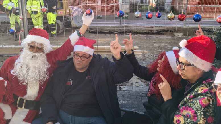 Visto il perdurare dei lavori ACA, l’associazione di Pescara Amici di Corso Vittorio Emanuele ha inscenato una protesta natalizia addobbando la recinzione del cantiere
