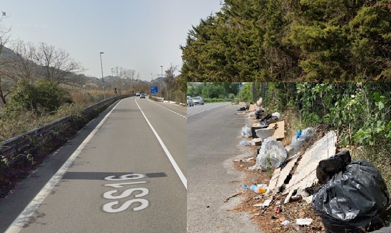 “Invio questa segnalazione di degrado e sporcizia presente da tempo sulle piazzole di sosta lungo la circonvallazione sud. Una strada a scorrimento veloce che è diventata una discarica a cielo aperto”.