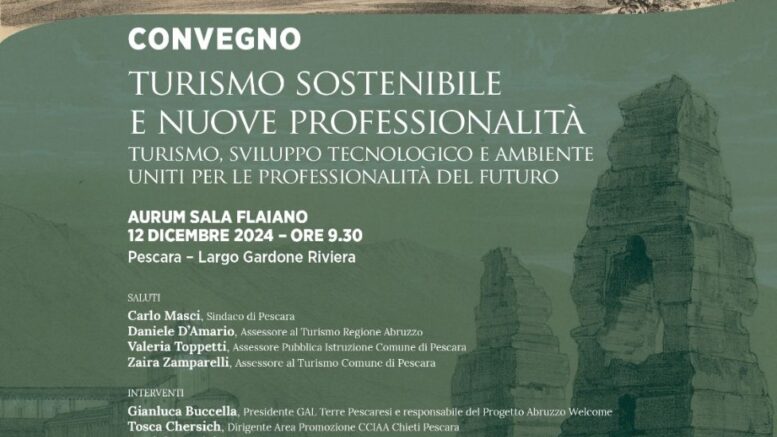 La Città di Pescara guarda al turismo del futuro e lo fa attraverso un convegno dal titolo “Turismo sostenibile e nuove professionalità” promosso dalla Ianieri Edizioni di Pescara con il patrocinio del Comune di Pescara e la collaborazione dell’Assessorato alla Pubblica Istruzione con l’Avv. Valeria Toppetti.