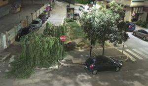 Un grosso albero è caduto la scorsa notte nei pressi del cancello d’ingresso della residenza universitaria in via Benedetto Croce a Pescara