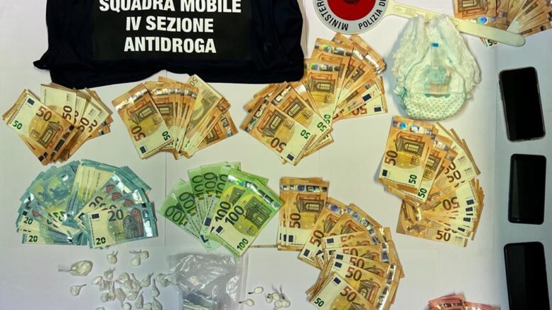 Inoltre, è stato trovato del denaro contante, suddiviso in banconote di vario taglio, per una somma complessiva di 9.690 euro, di cui 3mila occultati in un armadio e gli altri 6.690 all’interno di un pannolino per neonati che il giovane aveva con sé al momento dell’ingresso in casa degli investigatori.