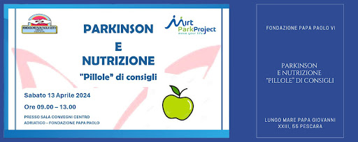 Si intitola “Parkinson e nutrizione: pillole di consigli” il primo incontro, ad ingresso libero, dedicato al tema dell’alimentazione nei malati affetti dalla malattia di Parkinson che si terrà domnai, sabato 13 aprile, dalle 9 alle 13 presso la sala convegni del Centro Adriatico della Fondazione Paolo VI in Lungomare Papa Giovanni XXIII 55