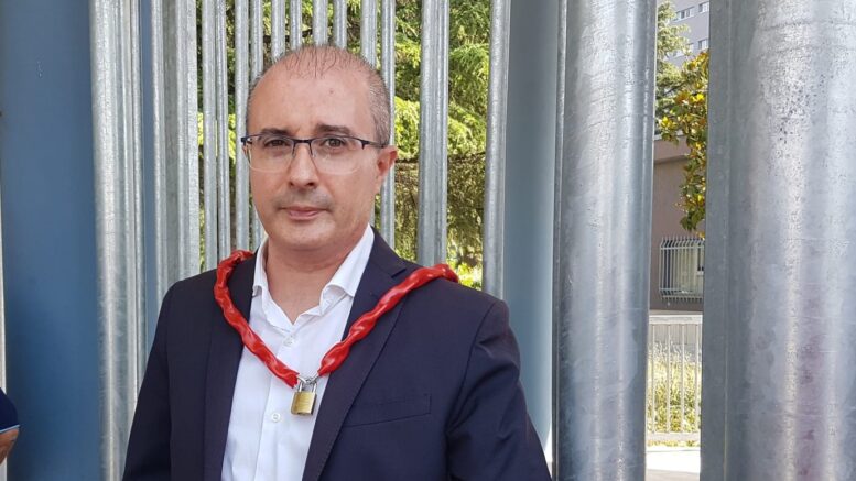 Gesto eclatante questa mattina a Pescara del consigliere regionale del M5S Domenico Pettinari che si è incatenato davanti al pronto soccorso dello “Spirito Santo” per manifestare solidarietà ai parenti del 90enne pescarese deceduto, proprio all’interno del pronto soccorso, il 2 giugno scorso
