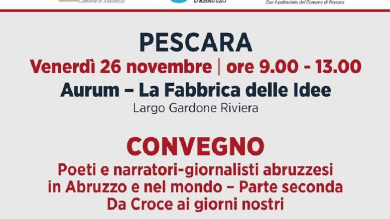 Venerdì 26 novembre, dalle ore 9.00 alle ore 13.00, presso la Sala d’Annunzio dell’Aurum-La fabbrica delle idee, Largo Gardone Riviera, a Pescara, si terrà il convegno “Poeti e narratori-giornalisti