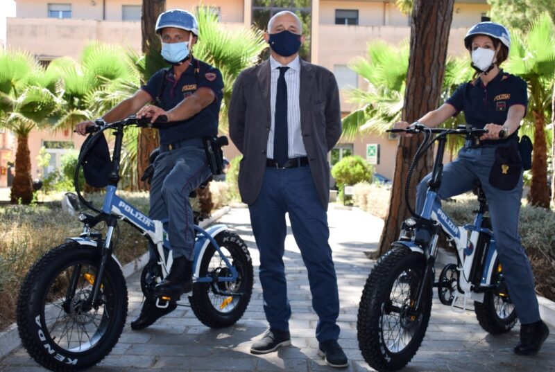 Da oggi, nelle vie del centro cittadino e del lungomare di Pescara, sarà attivo un servizio di vigilanza e prevenzione con l’impiego di 2 e-bike con i colori della Polizia di Stato.