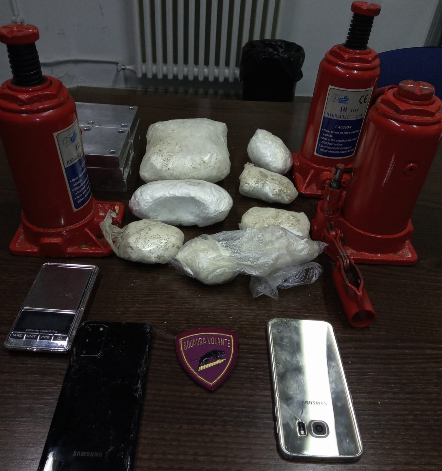 Come prima cosa hanno cercato di gestire la situazione apparsa subito molto tesa: l’uomo, visibilmente alterato, si rifiutava di aprire il portoncino blindato dell’appartamento per permettere agli agenti di poter intervenire. Ma il rifiuto dell’uomo aveva anche un’altra finalità: evitare che i poliziotti trovassero la sostanza stupefacente nascosta in casa. Solo un attimo prima che intervenissero i Vigili del Fuoco, il 49enne – già conosciuto alle forze dell’ordine e sottoposto alla sorveglianza speciale con obbligo di dimora – ha desistito dal suo intento e fatto entrare i poliziotti i quali, dopo aver messo al sicuro la donna ed i figli adolescenti, hanno perquisito l’abitazione. In bella vista sul comò della camera da letto gli agenti hanno trovato tre involucri di cocaina, per un peso complessivo di circa 65 grammi. All’interno di una corte recintata di pertinenza dell’abitazione, poi, altri cinque involucri sempre di cocaina nascosti sotto alcuni centimetri di terra, per un totale di più di un chilo di droga oltre a materiale per il confezionamento.
