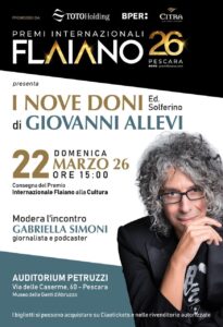 La premiazione, prevista per il 22 marzo alle ore 15.00 all’Auditurium Petruzzi di Pescara, sarà preceduta dalla presentazione del libro “I Nove Doni”, edizioni Solferino, in cui il Maestro Allevi racconta la propria vita, la musica che lo accompagna in ogni momento della giornata e la spiritualità che ha scoperto in un momento difficile, da cui trae la forza per continuare il proprio percorso.