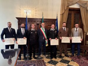 Il sindaco Carlo Masci e il comandante provinciale dei Carabinieri di Pescara, Stefano Ranalletta, hanno premiato oggi i militari dell’Arma che si sono distinti nelle operazioni di polizia giudiziaria denominate “Tre Piazze” e “Saline”, due importanti interventi che hanno contribuito in modo decisivo alla tutela della legalità e della sicurezza in città e nell’area metropolitana