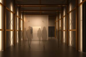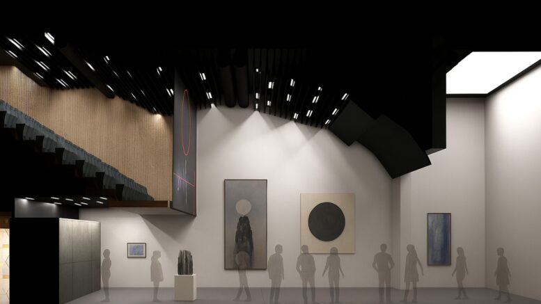 È previsto anche uno schermo, proiettabile, che chiude la vista della galleria. L’ingresso, invece, è stato pensato come una porta basculante (detta a ginocchio) con una prima accoglienza all’interno del teatro che accompagna all’interno del foyer (in fondo c’è un guardaroba). L’elemento che regola un po’ tutto lo spazio della sala è la tribuna retrattile e nel momento in cui è completamente chiusa e il palco completamente abbassato si crea uno spazio completamente fruibile. In totale ci saranno circa 300 posti, quelli che c’erano anche prima”.