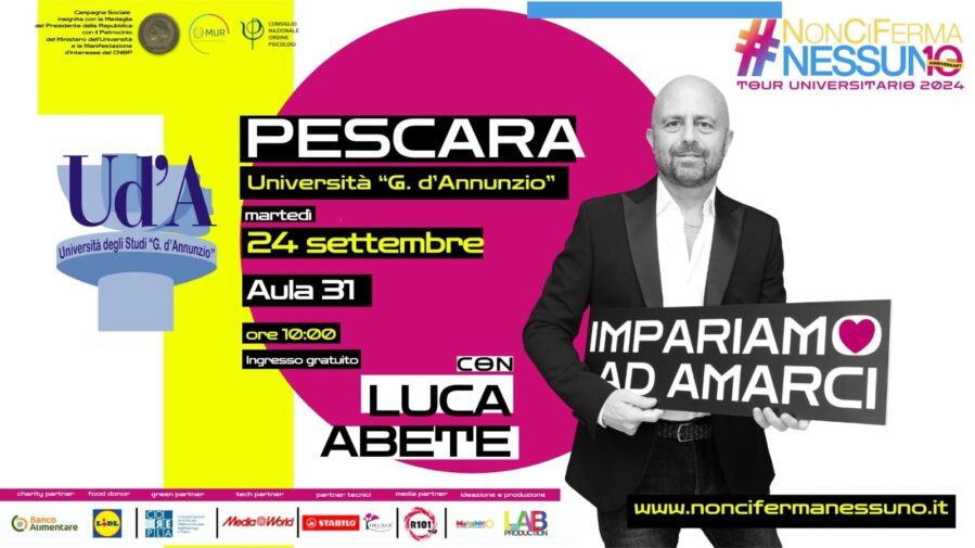 Martedì 24 settembre, alle 10, nell’aula 31 dell’Università degli Studi “Gabriele d’Annunzio” di Chieti-Pescara arriva il tour motivazionale #NonCiFermaNessuno