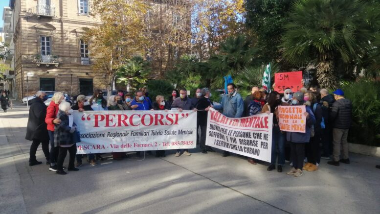 Presidio questa mattina a Pescara, sotto alla sede dell’assessorato regionale alla Sanità di via Conte di Ruvo, per la mancata adeguata assistenza ai malati mentali e ai loro familiari