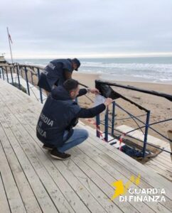 La componente aeronavale della Guardia di finanza di Pescara prosegue l’attività di tutela dell’ambiente marino e del demanio. L’approccio sinergico dei militari della Stazione Navale con i tecnici del Comune, dell’Agenzia del Demanio e della Capitaneria di Porto, ha permesso di verificare la legittimità della concessione di un noto stabilimento balneare del centro di Pescara.
