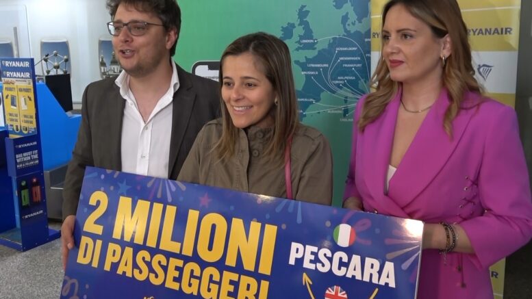 “Ryanair è lieta di festeggiare i primi 2 milioni di passeggeri sulla rotta Pescara – Londra Stansted. Questo significativo traguardo testimonia la crescita continua di Ryanair e gli investimenti della compagnia sull’Aeroporto d’Abruzzo. Questa estate, Ryanair opera attraverso una programmazione robusta da/per l’Aeroporto d’Abruzzo, con oltre 160 voli settimanali su 10 rotte, incluse le nuove da/per Breslavia, Cagliari, Milano Malpensa, Kaunas e Valencia. Questa programmazione è sostenuta dall’impegno di Ryanair nei confronti dell’Aeroporto d’Abruzzo, con un aeromobile basato in più, per un totale di 200 milioni di dollari di investimento, e il supporto ad oltre 950 posti di lavoro. Ryanair è inoltre lieta di offrire al 2 milionesimo passeggero sulla rotta Pescara – Londra Stansted, Maria Prato, residente a Londra, reduce insieme al marito da un weekend di vacanza in Abruzzo, una gift card del valore di 50€ per viaggiare de/per qualunque destinazione del network Ryanair, invitandola a sedersi, rilassarsi e a godersi il viaggio. Non vediamo l’ora di trasportare sempre più passeggeri sui voli a tariffe basse di Ryanair da/per l’Aeroporto d’Abruzzo nei prossimi anni”.