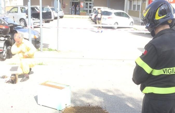 A causa di uno sciame di api i Vigili del Fuoco di Pescara sono intervenuti stamani All’Istituto “Alessandro Volta”. Sul posto anche un apicoltore.