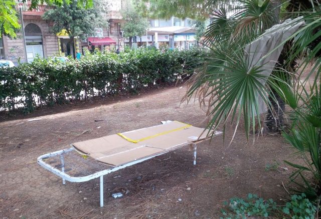 L’immagine, piuttosto eloquente, si inserisce nell’emergenza homeless all’interno della pinetina che lambisce la stazione vecchia e il terminal bus di Pescara, un’area già interessata da ripetute operazioni di polizia e da diversi sgomberi, ma che puntualmente viene rioccupata e utilizzata per il bivacco diurno e notturno. La foto inviata da Foschi è corredata da un commento ironico posto a mo’ di didascalia: