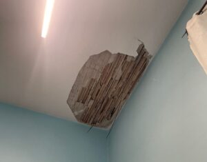 Nel palazzo del Comune di Pescara, nella stanza assegnata al gruppo consiliare del Pd, si è staccato un pezzo di solaio