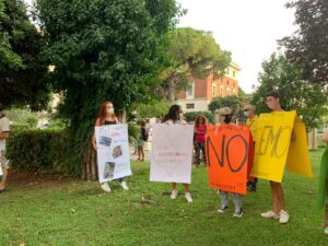 Pomeriggio di protesta a Pescara dove studenti e docenti del “Liceo Marconi” si sono dati appuntamento nel giardino che collega il palazzo della Provincia a quello del Comune per manifestare il dissenso verso la soluzione delle 5 sedi per il prossimo anno scolastico.