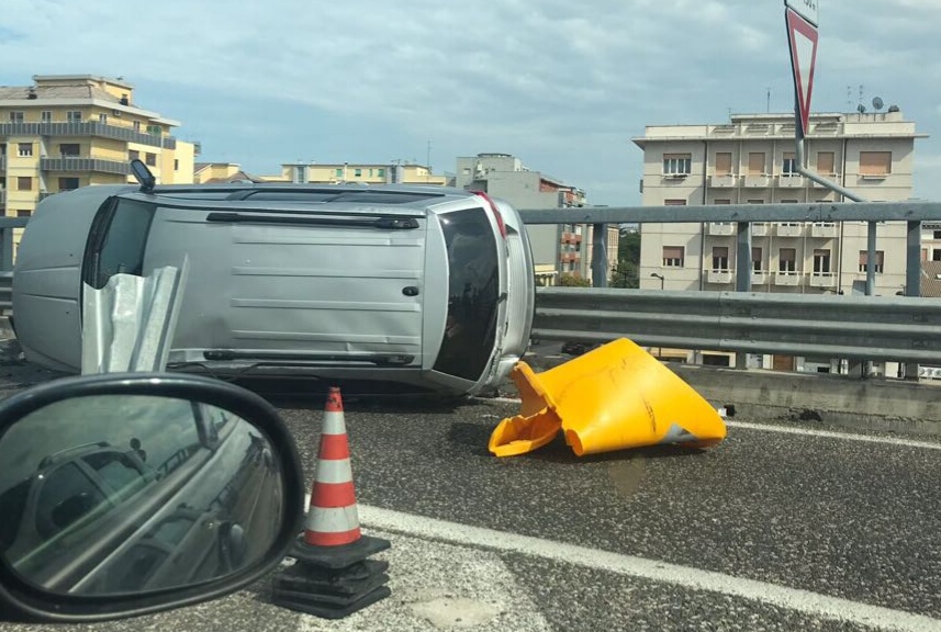 Spettacolare incidente stradale sull’Asse Attrezzato nei pressi della rampa d’ uscita di Piazza Unione. Feriti leggermente due bambini.