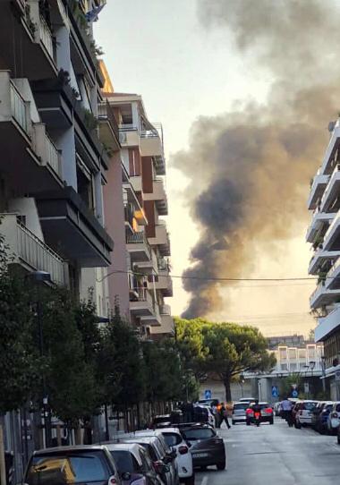Sul posto oltre a mezzi dei vigili del fuoco anche due pattuglie della polizia municipale impegnate sul fronte viario. A prender fuoco sarebbero state delle erbacce. La colonna nera di fumo era visibile, come vedete dalla nostra foto, anche a distanza: qui siamo all’inizio di via Chieti da Corso Vittorio Emanuele. Situazione, a detta dei vigili del fuoco raggiunti telefonicamente, sotto controllo.