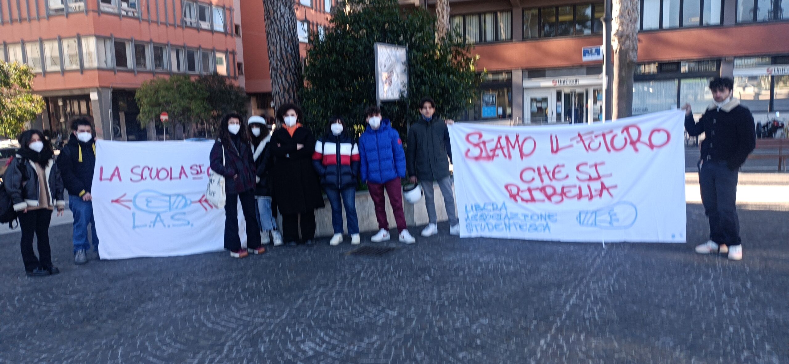 La ‘Libera Associazione Studentesca’ e i vari rappresentanti di istituto di Pescara, questa mattina in piazza per chiedere maggiore sicurezza in tempo di Covid