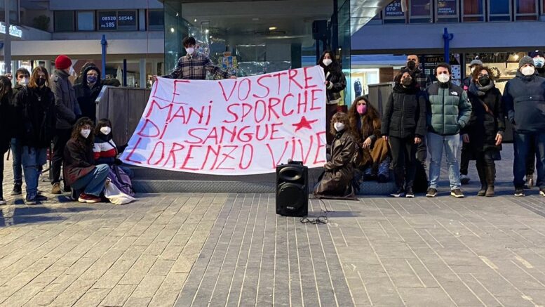 Il presidio degli studenti del collettivo Libera Associazione si è svolto ieri a Pescara, nella centralissima piazza della Rinascita, dove gli studenti hanno esposto un cartello in ricordo di Lorenzo Parelli, studente di un istituto professionale di Udine morto il 21 gennaio scorso mentre stava frequentando un Pcto, i cosiddetti percorsi per le competenze trasversali e l’orientamento che hanno sostituito l’alternanza scuola-lavoro. Il cartello bianco con la scritta con la vernice rossa recita: “Lorenzo vive”.