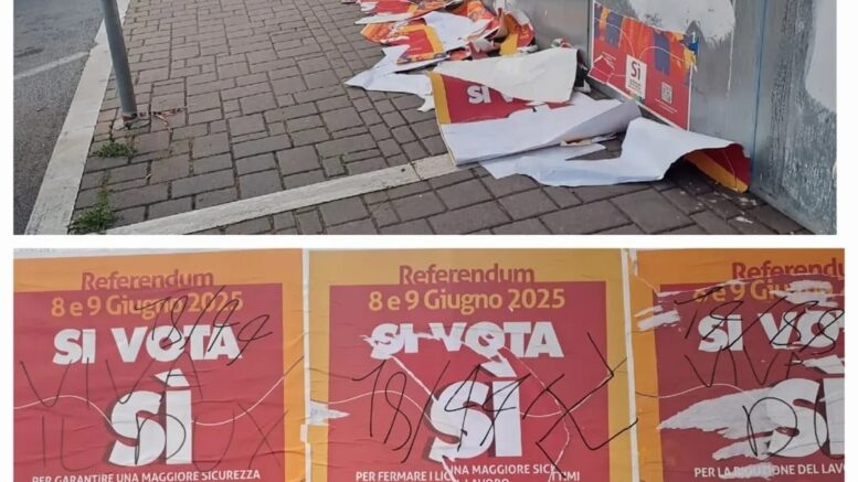 A segnalare il danneggiamento e le scritte comparse su alcuni spazi delle affissioni riservate al Sì ai cinque referendum è il segretario nazionale di Rifondazione comunista, MAurizio Acerbo, che scrive: