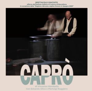 Edoardo Oliva. Un monologo potente e struggente, ambientato nell’Abruzzo di fine Ottocento. Caprò è un contadino anonimo, un antieroe tragico che vive il naufragio della propria esistenza su un fazzoletto di terra. Lo spettacolo, già rappresentato in oltre cento repliche, inaugurerà la sesta edizione del Festival Internazionale “In Scena” di Barcellona.