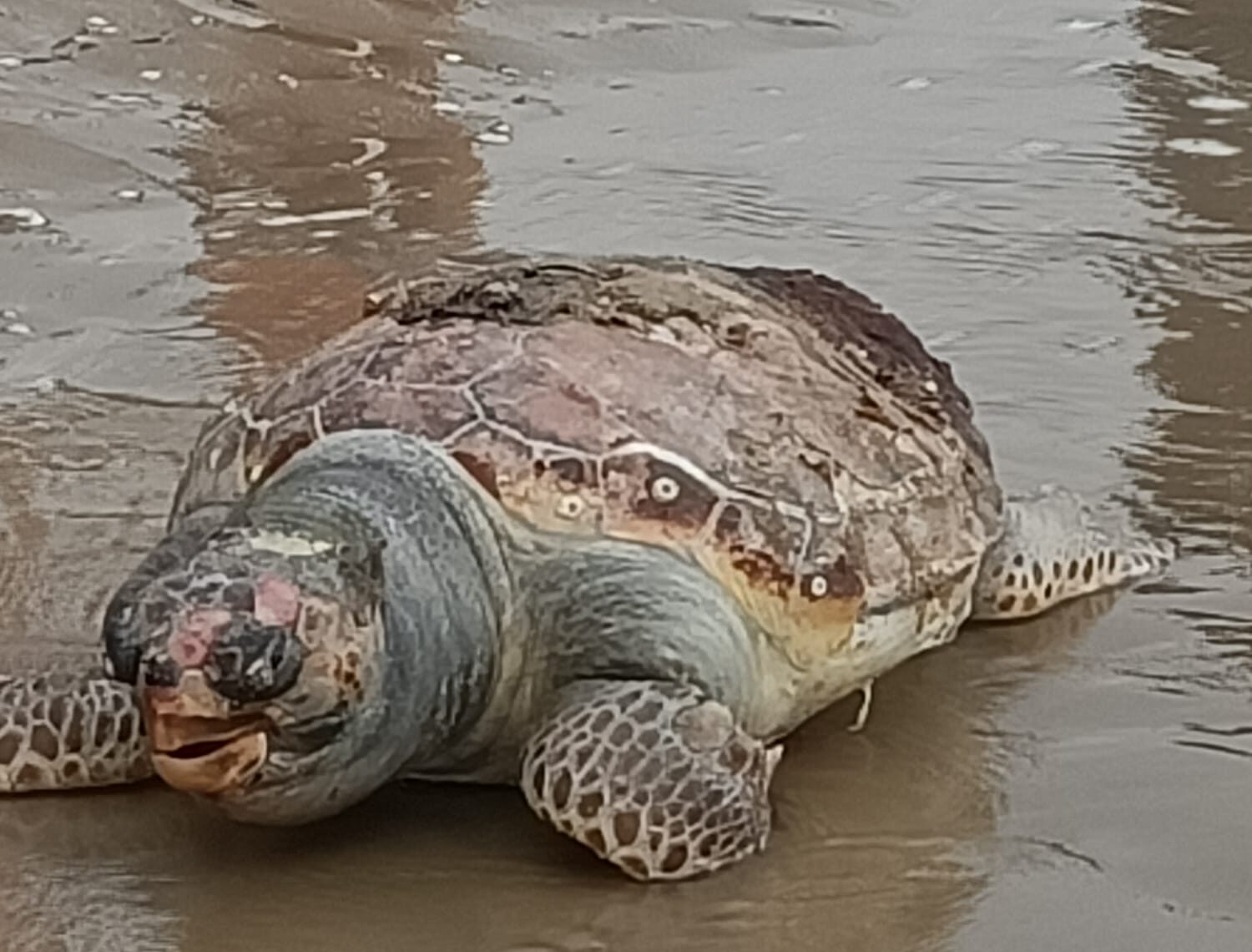 L’esemplare è stato trascinato a riva dalle forti correnti. Secondo i primi rilievi, la tartaruga era morta da diverso tempo. Avvertita la Asl competente.