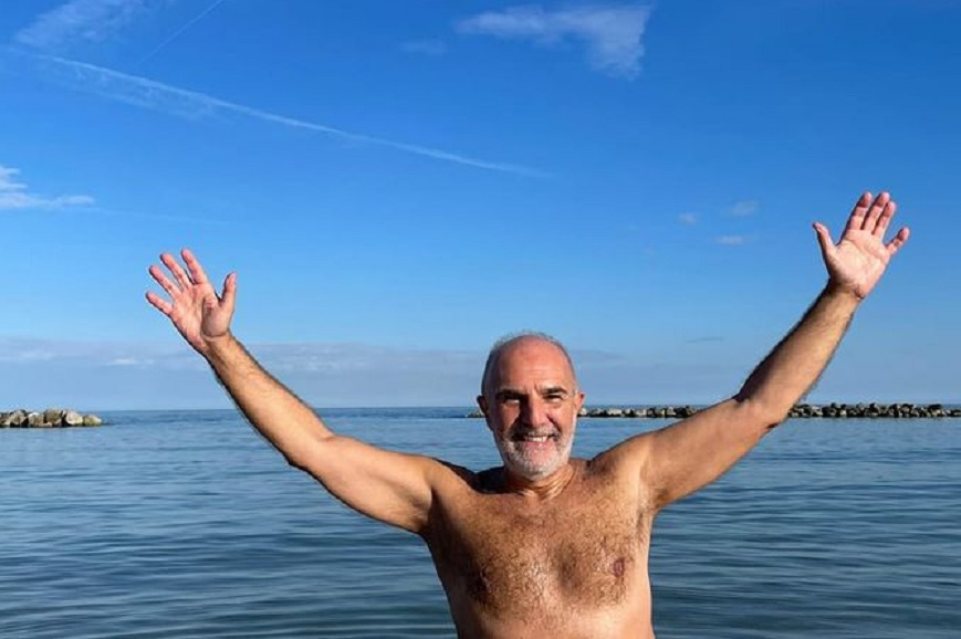 “Come ogni anno, da pescarese nato a due passi dalla spiaggia, ieri non ho resistito a fare un tuffo nel nostro mare d’inverno.