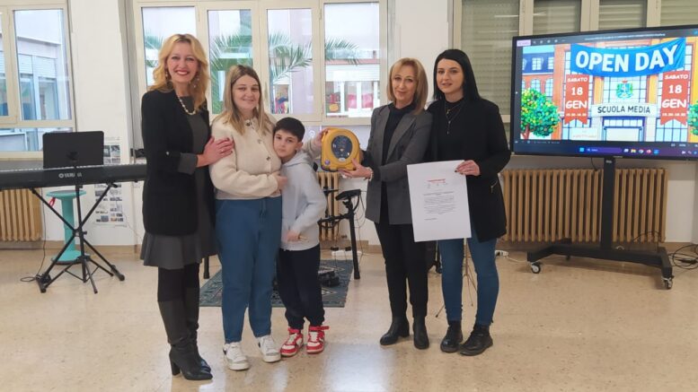 Questa mattina la mamma di Mattia, Roberta Palmieri, ha donato un defibrillatore alla scuola Foscolo di via Einaudi, guidata dalla dirigente scolastica, Rossella Di Donato. La donazione è avvenuta alla presenza dell’assessore comunale alla Pubblica istruzione Valeria Toppetti che sta sostenendo fortemente l’azione dell’associazione “Cromosoma della felicità”, presieduta da Alessia Stipani, e sta coinvolgendo le scuole della città, affinché ci siano una sensibilità e un’attenzione sempre maggiori alla tutela della salute dei bambini, ma anche degli adulti, per affrontare le situazioni di emergenza. Dopo aver donato un defibrillatore semiautomatico all’asilo nido La Conchiglia di via Verrotti, l’associazione ha raggiunto oggi la scuola di via Einaudi dove è stata accolta dalla dirigente scolastica, Rossella Di Donato, e da una classe, con alcuni insegnanti. A sottolineare l’importanza di questo gesto è stata la performance di Carlo, il fratellino di Mattia, che si è esibito alla batteria – insieme ai suoi insegnanti – lanciando un messaggio positivo sulle note di “La vita è bella”.