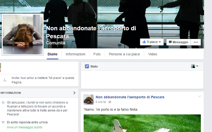 Il popolo del Web si mobilita per l’aeroporto d’Abruzzo: due petizioni on line e una pagina Facebook per chiedere a Ryanair di rimanere a Pescara.