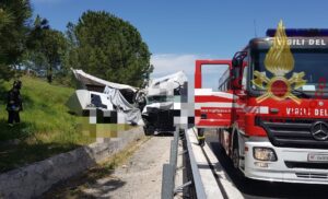 Secondo quanto si è appreso, il tamponamento è avvenuto nella tarda mattinata di oggi, venerdì 30 aprile, lungo l’Autostrada A25 Roma L’Aquila tra Villanova di Cepagatti e Chieti al Km 182 direzione Roma. Secondo le prime notizie, l’autista 52 enne originario di Bari si trovava a terra nel punto d’impatto quando è sopraggiunto un altro mezzo pesante che ha tamponato il suo camion. L’uomo sarebbe stato investito dal mezzo tamponato. Alcuni automobilisti in transito hanno lanciato immediatamente l’allarme e sul posto è prontamente intervenuta una squadra dei Vigili del Fuoco di Pescara con tre automezzi. Nel violento impatto ha perso la vita un autotrasportatore di 52 anni di Bari. La squadra dei Vigili del Fuoco ha messo in sicurezza la zona e con l’ausilio dell’autogru ha provveduto alla rimozione dei mezzi pesanti per liberare l’autostrada rimasta bloccata per diverse ore. Sul posto anche gli agenti della Polizia Stradale ed i sanitari del 118. Si è reso necessario l’intervento di un Elisoccorso. I medici non hanno potuto far altro che constatare il decesso dell’autotrasportatore di 52 anni.