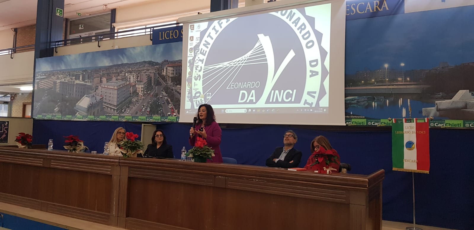 Nell’aula magna del Liceo scientifico Da Vinci di Pescara, il dibattito è stato animato tra gli altri anche dalla dirigente scolastica Stefania Petracca e dall’assessore alle politiche sociali del comune di Pescara, Adelchi Sulpizio.