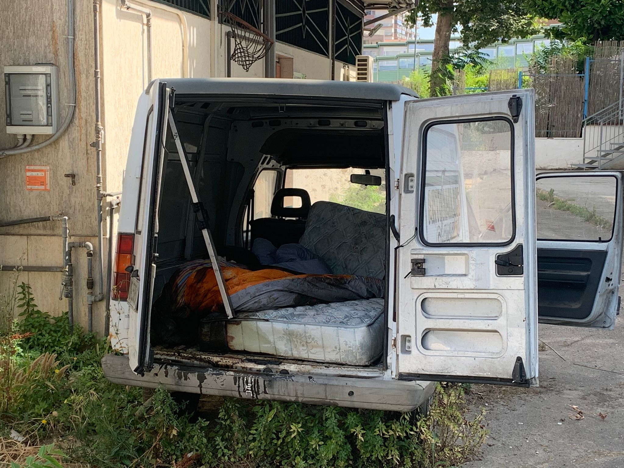 Si tratterebbe di un uomo di nazionalità straniera. Pare che il corpo senza vita fosse adagiato su un materasso. Dalle foto che vedete si distingue l’interno di un piccolo Van adibito a giaciglio di fortuna. Poco distante dal luogo del ritrovamento uno sportello di accoglienza per bisognosi. L’uomo avrebbe 50 anni e si propende per la morte naturale. In zona lo conoscevano tutti: un uomo sfortunato, di recente aveva avuto anche un infarto e mesi fa aveva perso l’ennesimo piccolo lavoro. Ben voluto da tutti, aveva trasformato quella macchina nel suo disperato rifugio per la notte.