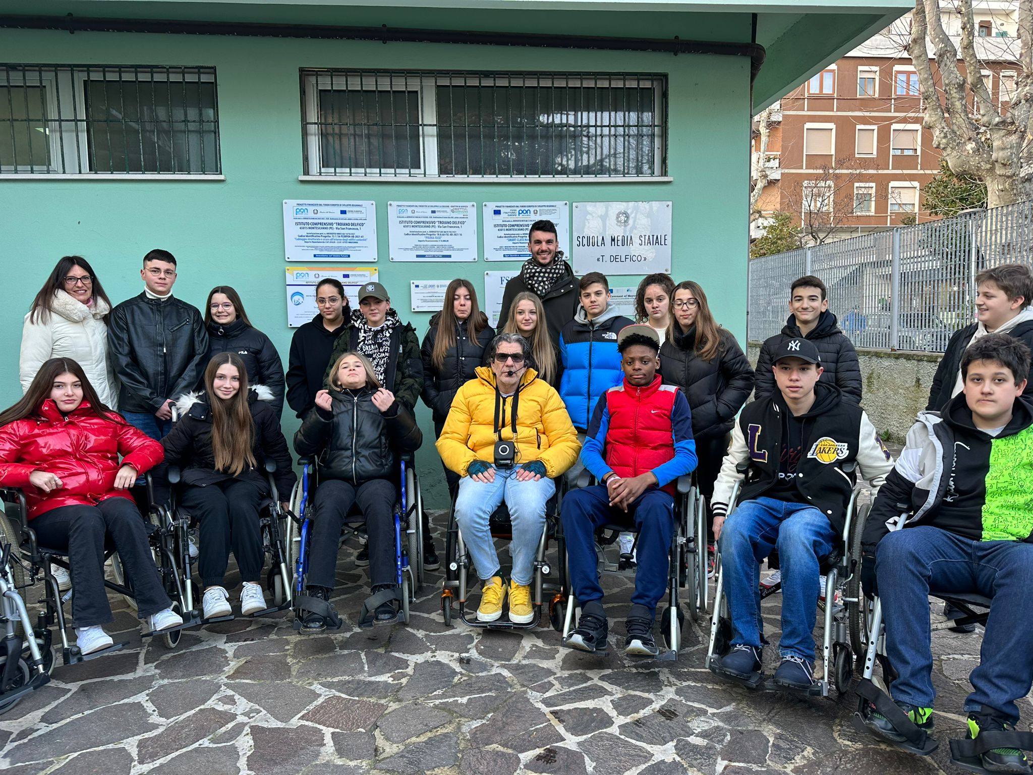 Le “sentinelle delle civiltà” in carrozzina. Sei terze medie in passeggiata empatica. Le neo “sentinelle della civiltà” della “Delfico” , guidati da Claudio Ferrante, affrontano le difficoltà reali di girare per la città in carrozzina